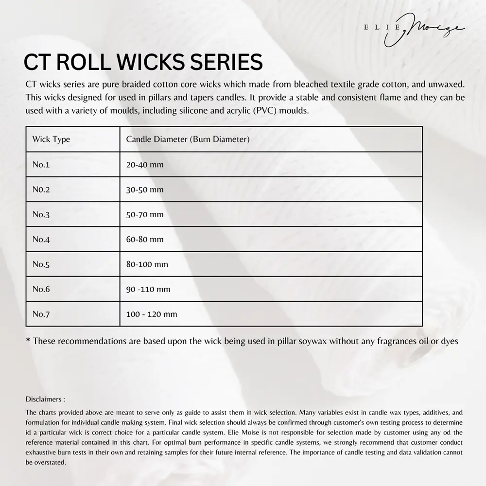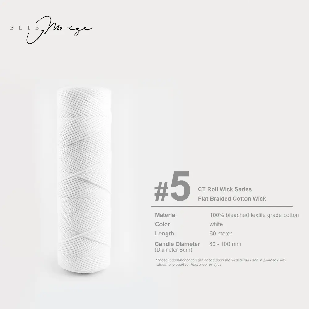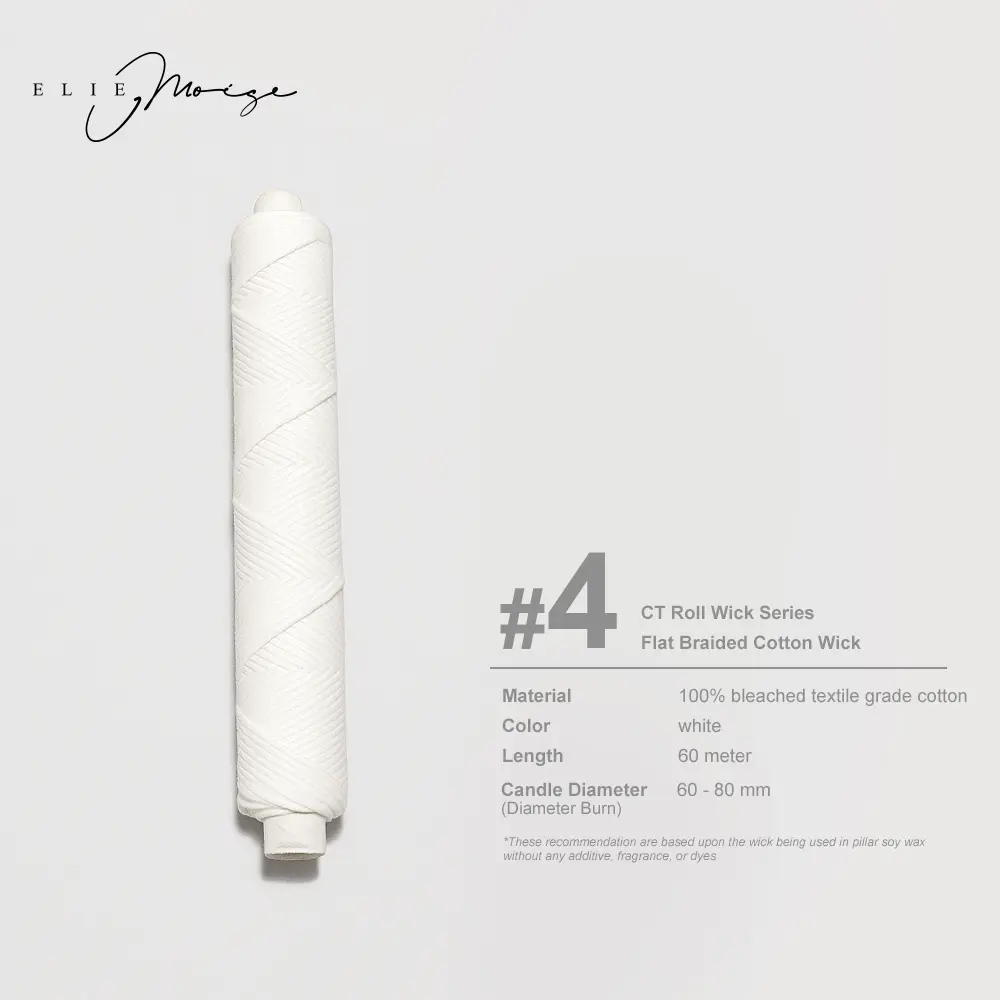 Sumbu Lilin Katun Roll Unwaxed bisa jadi pilihan ideal bagi kamu yang ingin membuat lilin dengan fleksibilitas baik dari segi tinggi, yang tidak dimiliki oleh sumbu katun prewaxed. Terbuat dari 100% katun bleached berkualitas tinggi (textile grade), tanpa lapisan wax (non-coated) dan tanpa sustainer tab, sehingga cocok untuk berbagai teknik pembuatan lilin, mulai dari container candle, pillar candle, hingga beeswax atau soy wax.